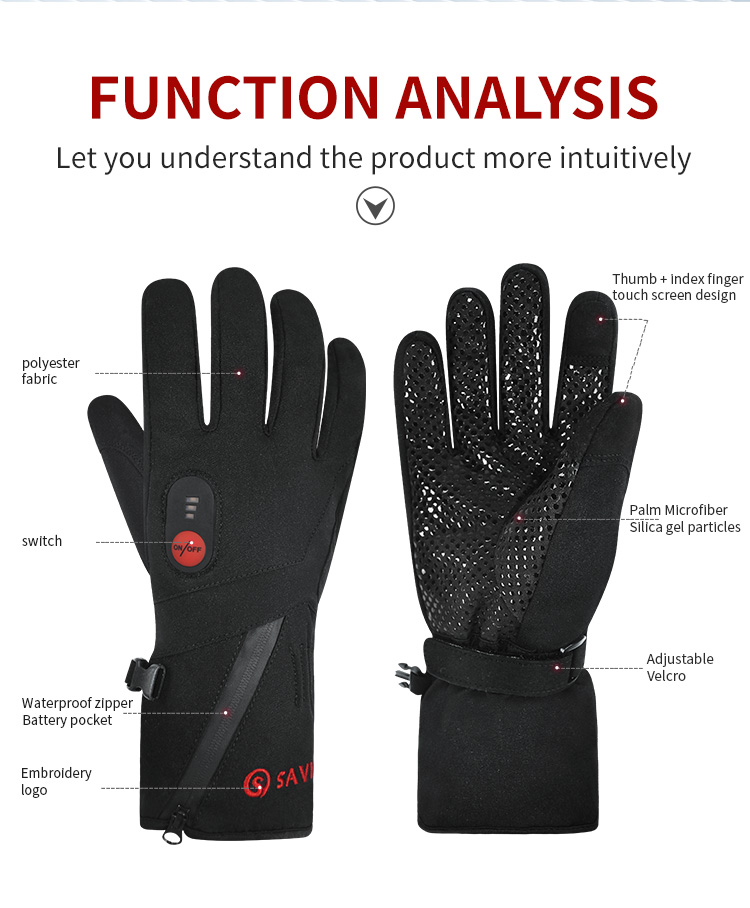 心之礼跨境冬季滑雪手套冬季户外充电保暖手套骑行加热手套五指电加热手套跨境可定制发热手套S88