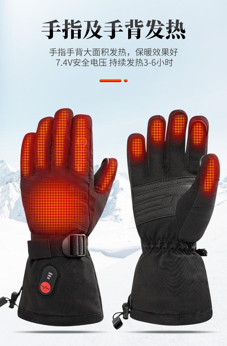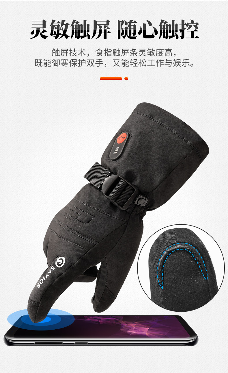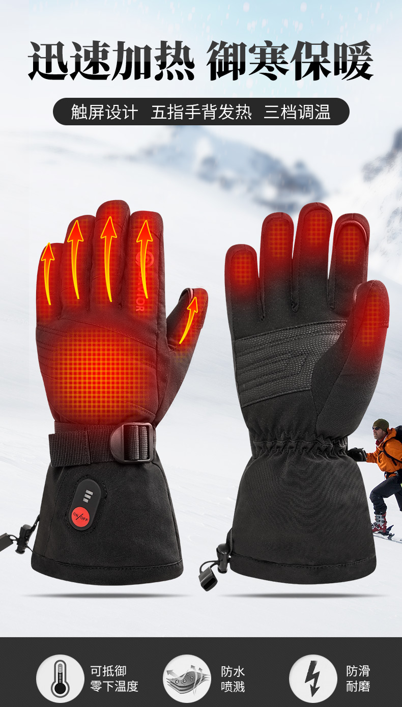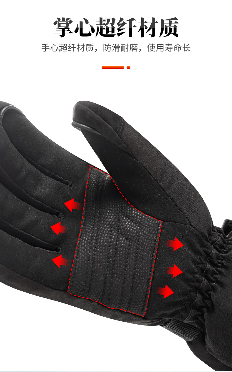 心之礼新款滑雪发热手套站岗执勤可加热手套保暖户外骑行电热手套可定制触屏跨境S70B