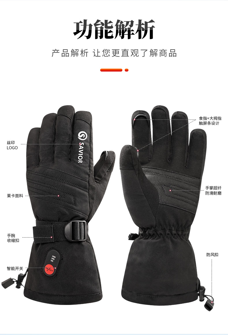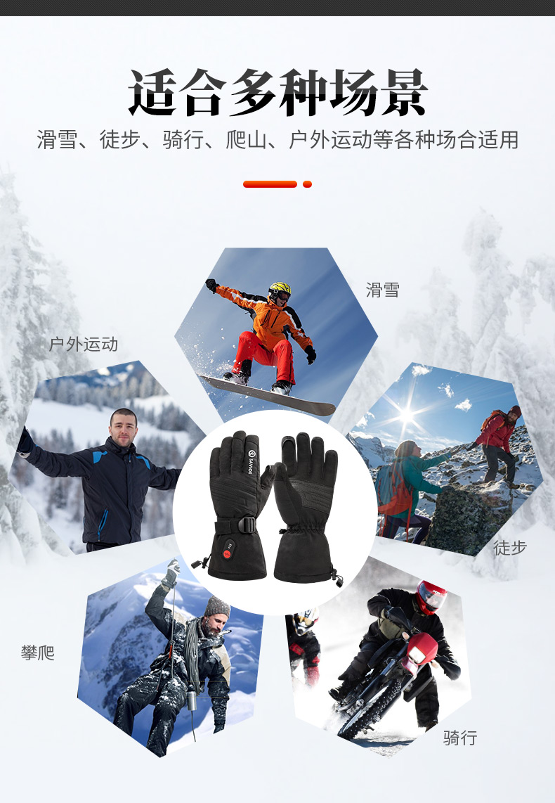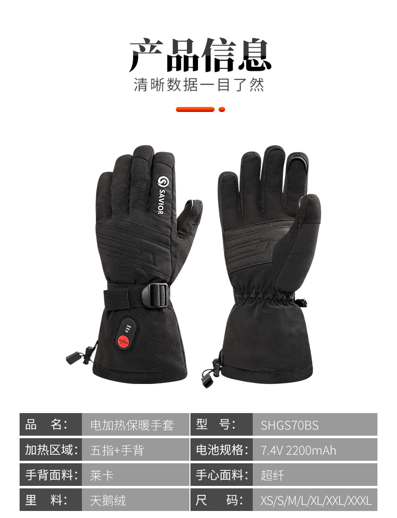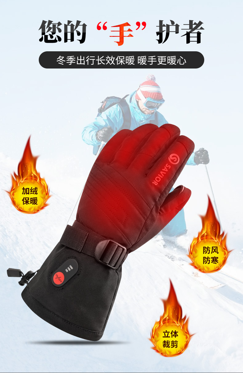 心之礼新款滑雪发热手套站岗执勤可加热手套保暖户外骑行电热手套可定制触屏跨境S70B