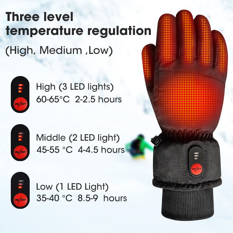 心之礼袖口防风电加热手套 骑行手套保暖 电加热手套跨境可定制滑雪徒步发热登山手套黑色S16