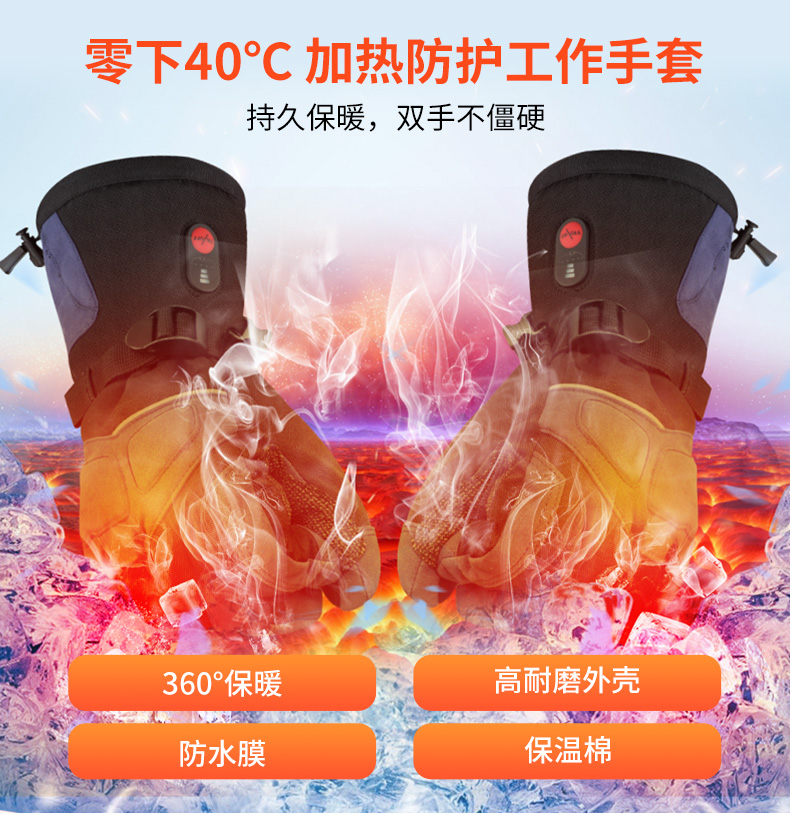 心之礼跨境发热劳保手套加厚保暖 便携电加热执勤手套防风耐磨充电式可定制SHG04