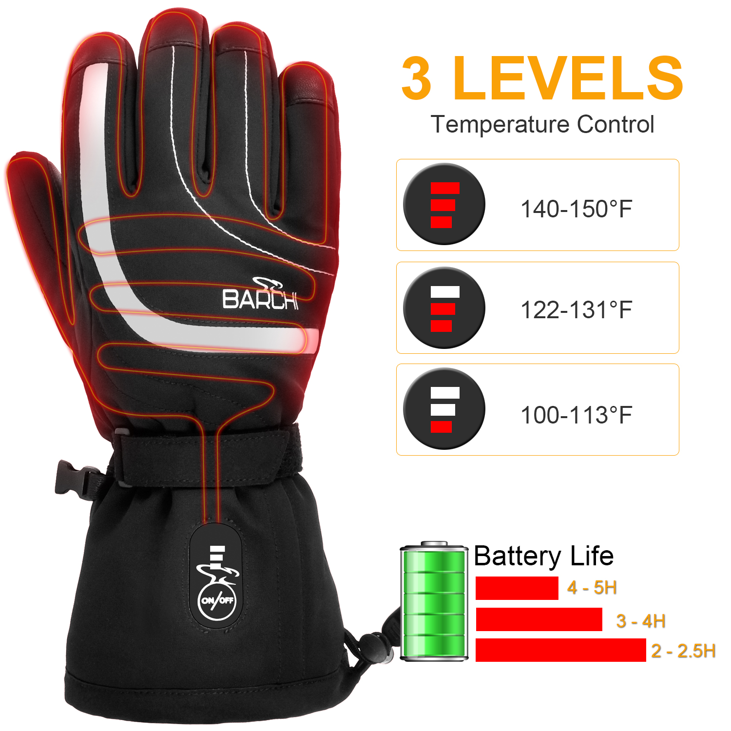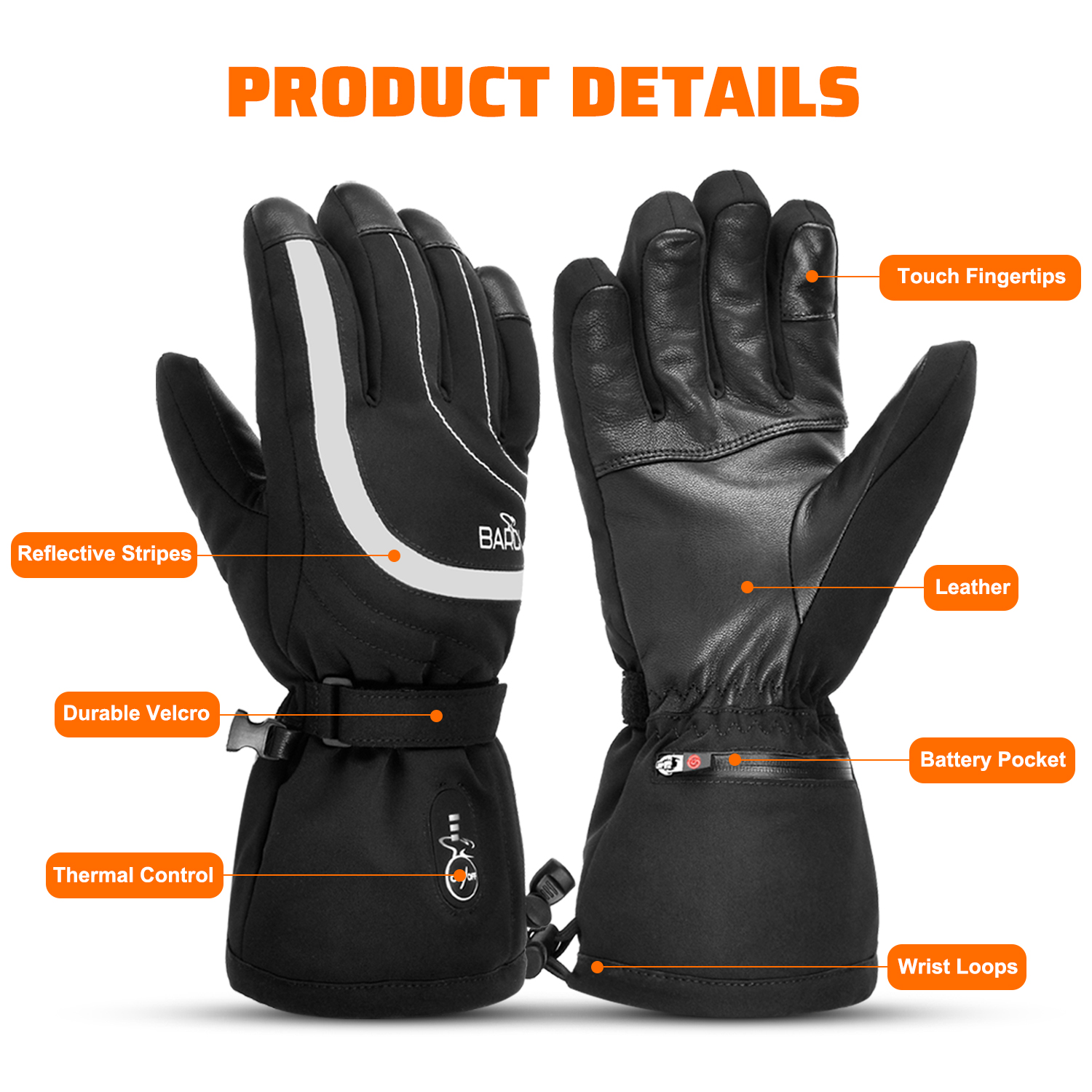 心之礼跨境新款电加热劳保手套工作耐磨电动车发热手套防风防滑执勤保暖BH02